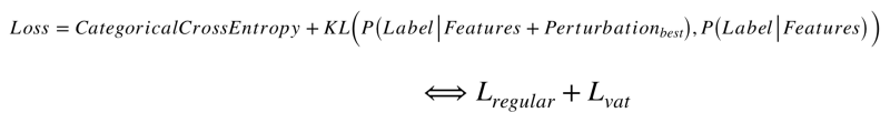 This last function is the virtual adversarial loss function that we can add to any regular loss function to work as a regularization.