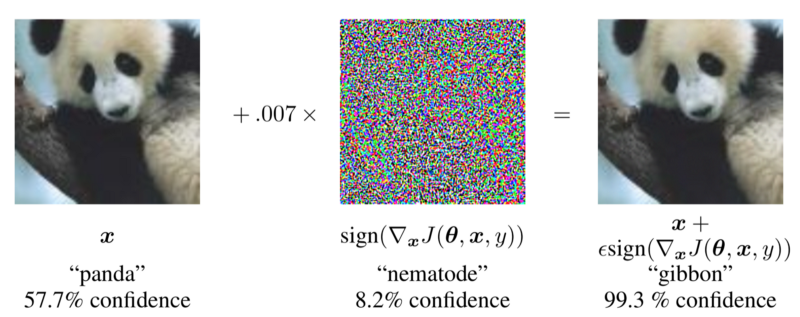 The introduction of this seemingly insignificant noise tweaks the image classifier into identifying the panda as a gibbon with over 99% confidence.